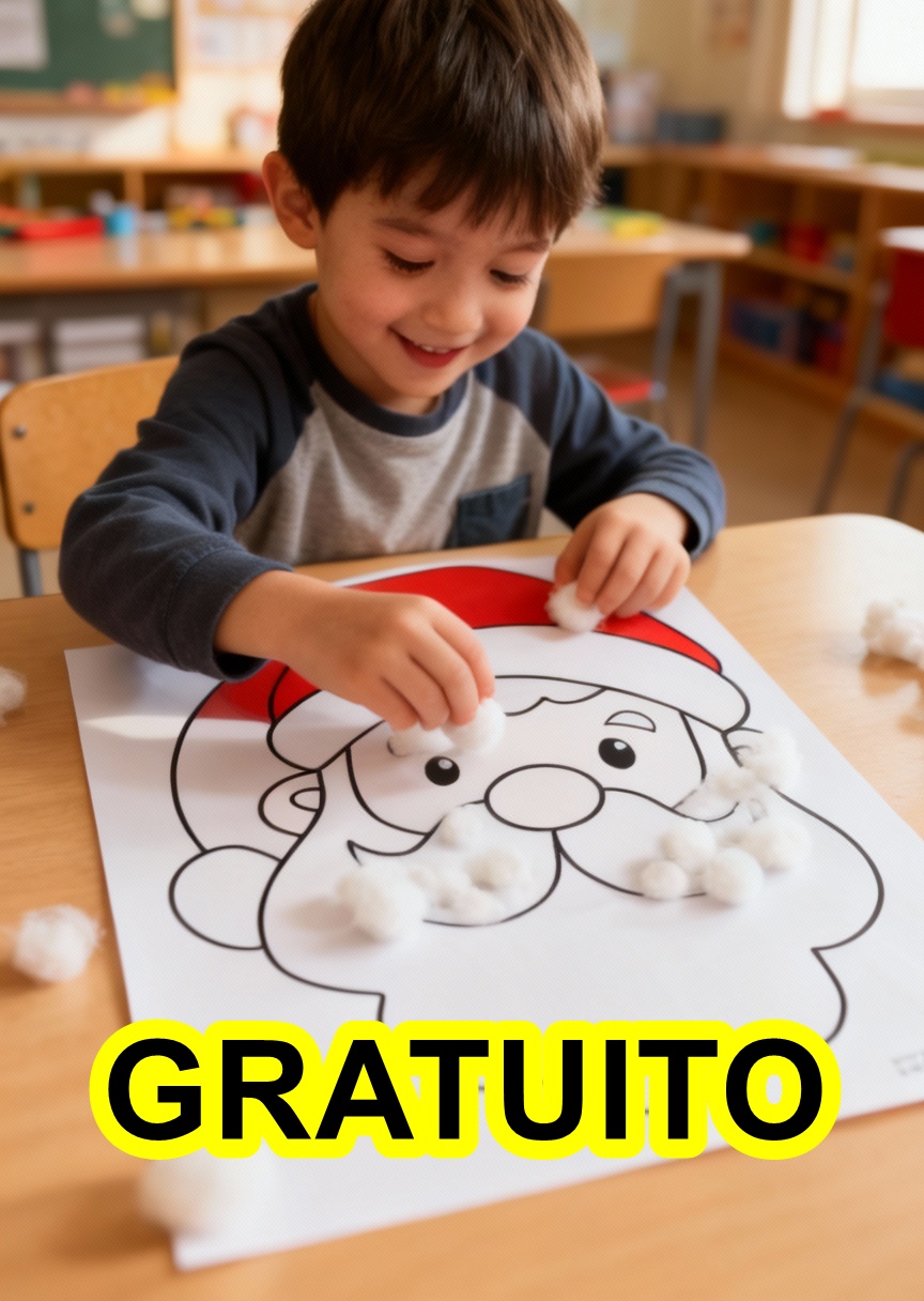 Olha só essa atividade lindaaa para encantar a turma: a criança cola algodão na barba do Papai Noel enquanto se diverte e aprende! ❄️🎨